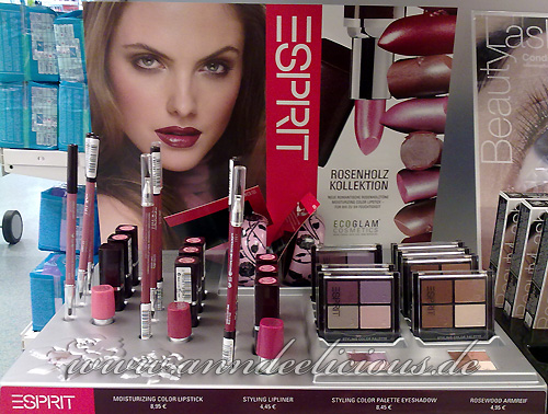 Zum einen habe ich die Rosenholz Kollektion von Esprit gesichtet. Die Lidschatten-Paletten (UVP 8,45€) sind auf jeden Fall aus dem normalen Bestand - die beiden Paletten habe ich selbst und habe sie im Aufsteller gleich wiedererkannt.